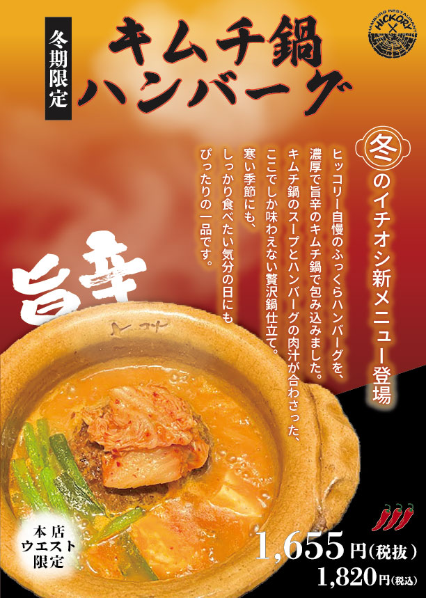 \🧤冬におすすめの新メニュー『キムチ鍋ハンバーグ』が期間限定で登場! ☃/