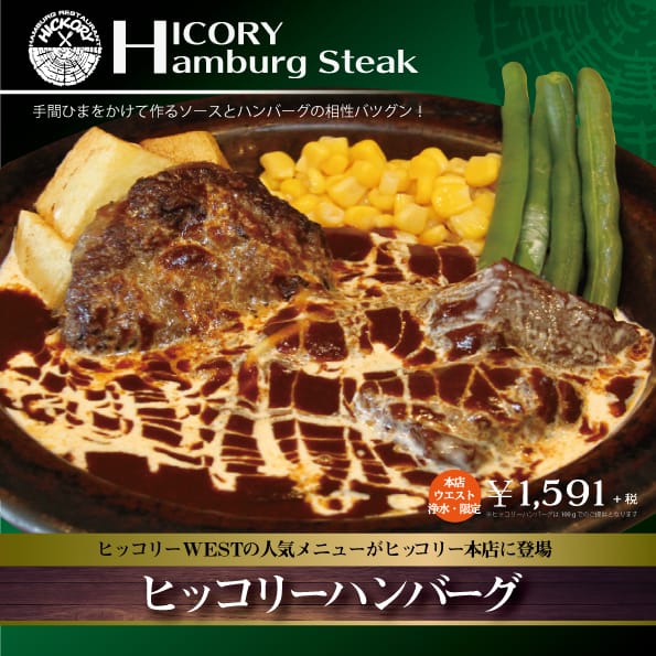 ※お取り扱いメニューの在庫に関しましては各取扱い店へお問い合わせください。おうち時間のお供に、ヒッコリーのハンバーグをぜひお買い求めください